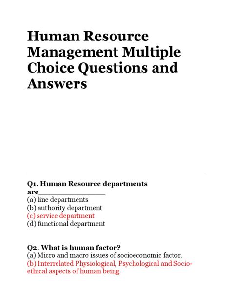 Download Human Resource Questions And Answers Doc